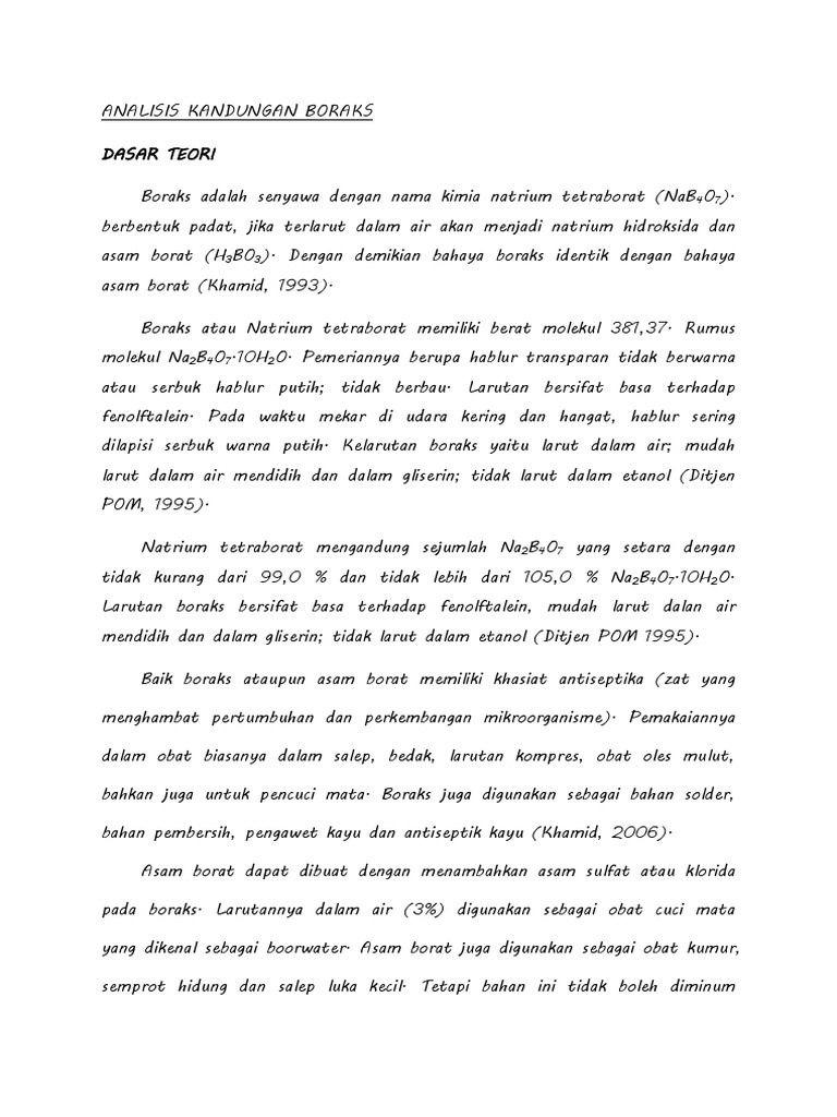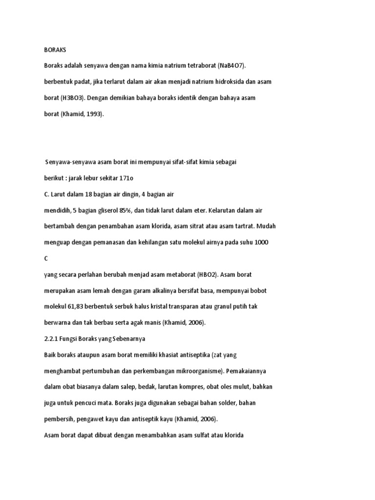 Boraks Adalah Senyawa Dengan Nama Kimia Natrium Tetraborat Docx