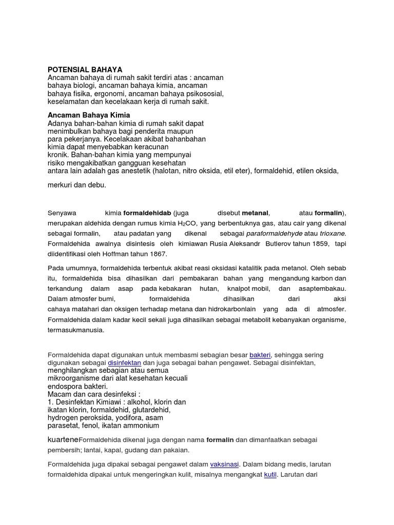 Pengertian Formalin Karakteristik Kegunaan Dan Bahayanya