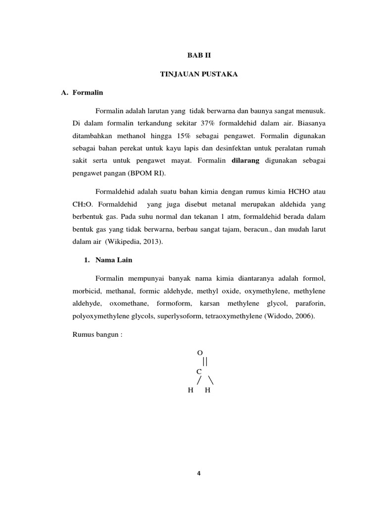 Bab Ii Tinjauan Pustaka 2 1 Pengertian Formalin Formalin Adalah