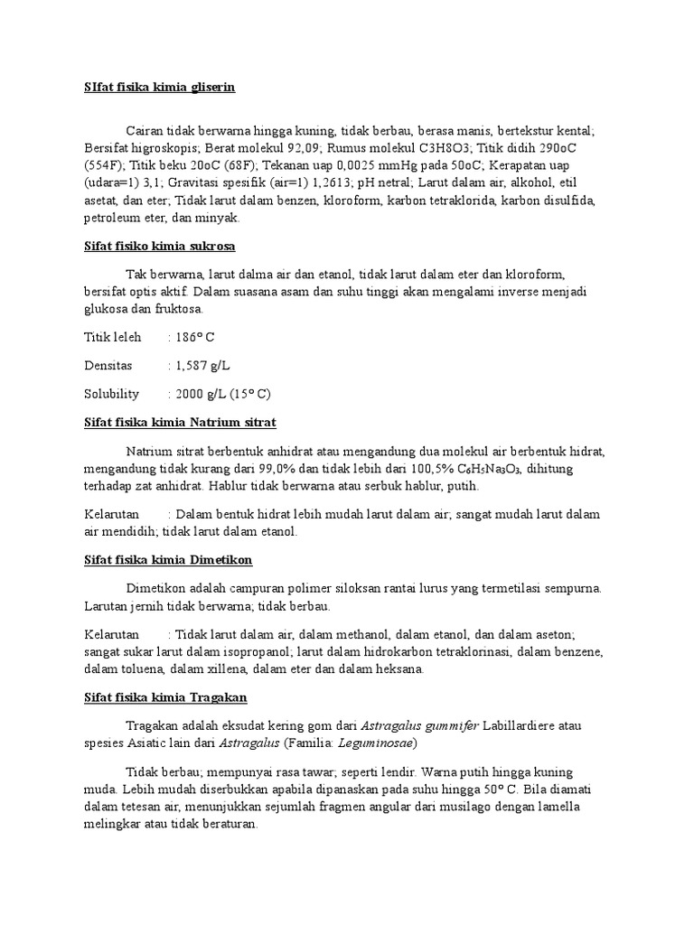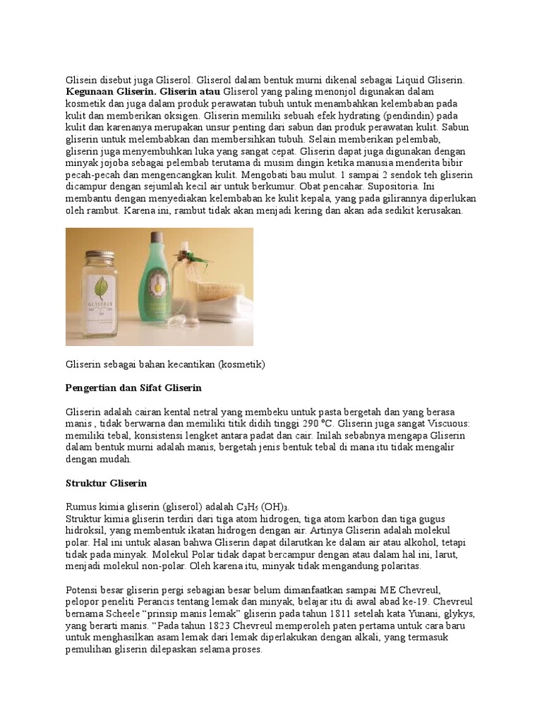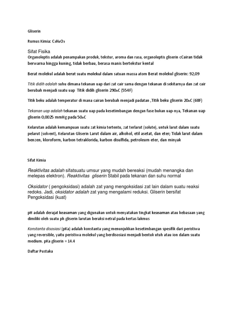 2 Gliserin Gliserin Berupa Cairan Jernih Kental Tidak Berbau Dan