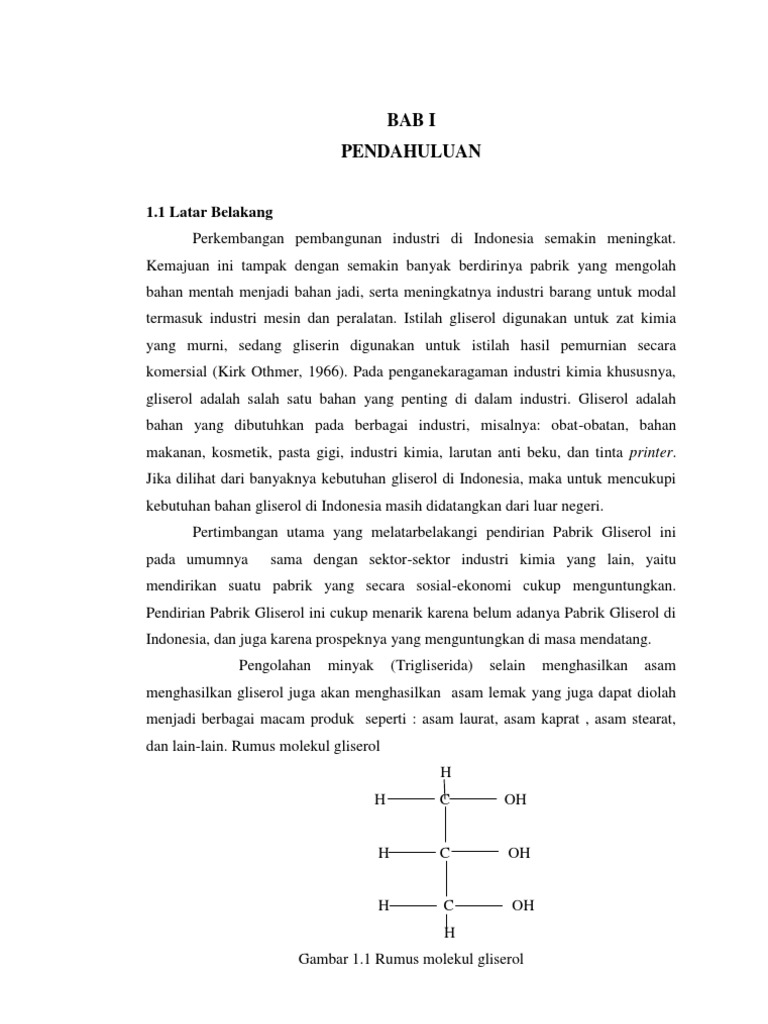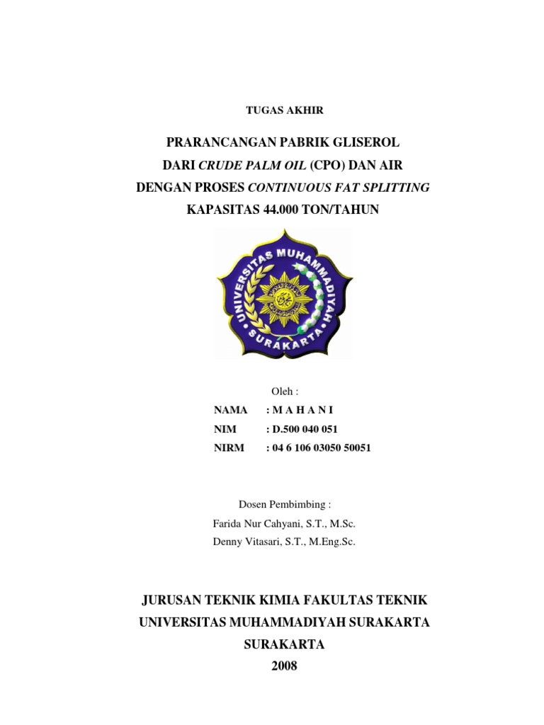 Tugas Akhir Prarancangan Pabrik Gliserol Dari Crude Palm Oil Cpo