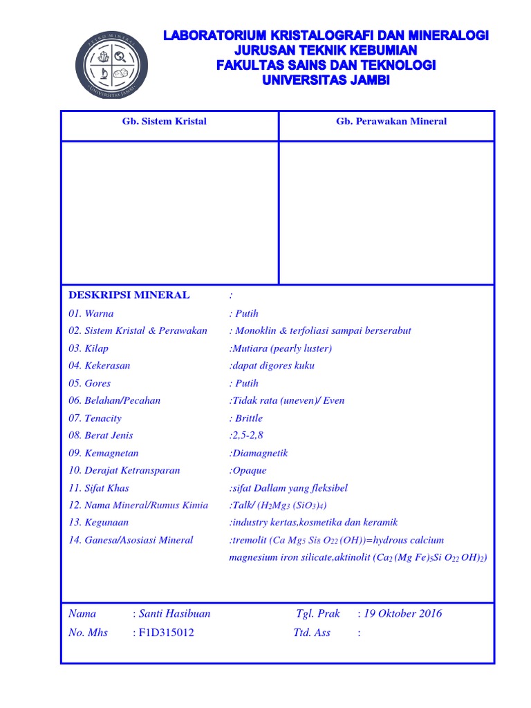 Contoh Lembar Laporan Mineralogi Pdf Foto Mineral Nama Mineral
