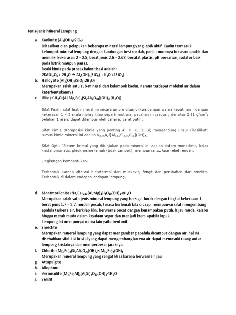 Karakterisasi Fisikokimia Mineral Lempung Sebagai Bahan Dasar