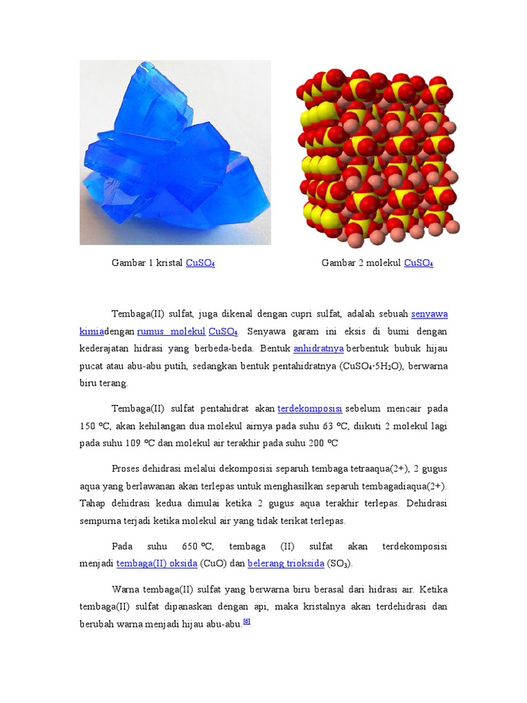 Jika Hidrat Tembaga Ii Sulfat Dipanaskan Terbentuk Tembaga Ii