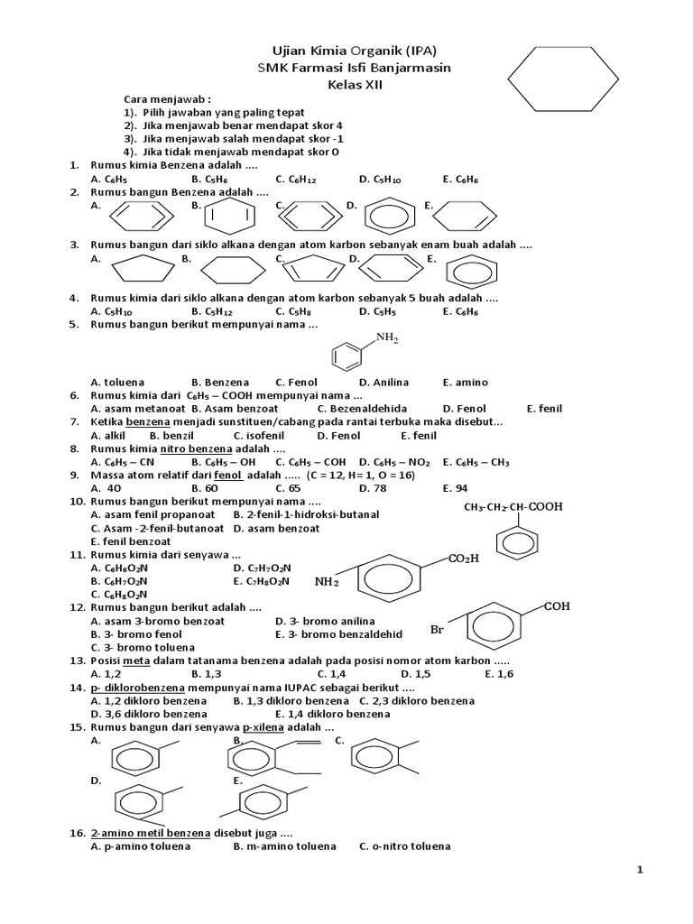 Ujian Berkala Kimia Organik Kls Xii Benzena