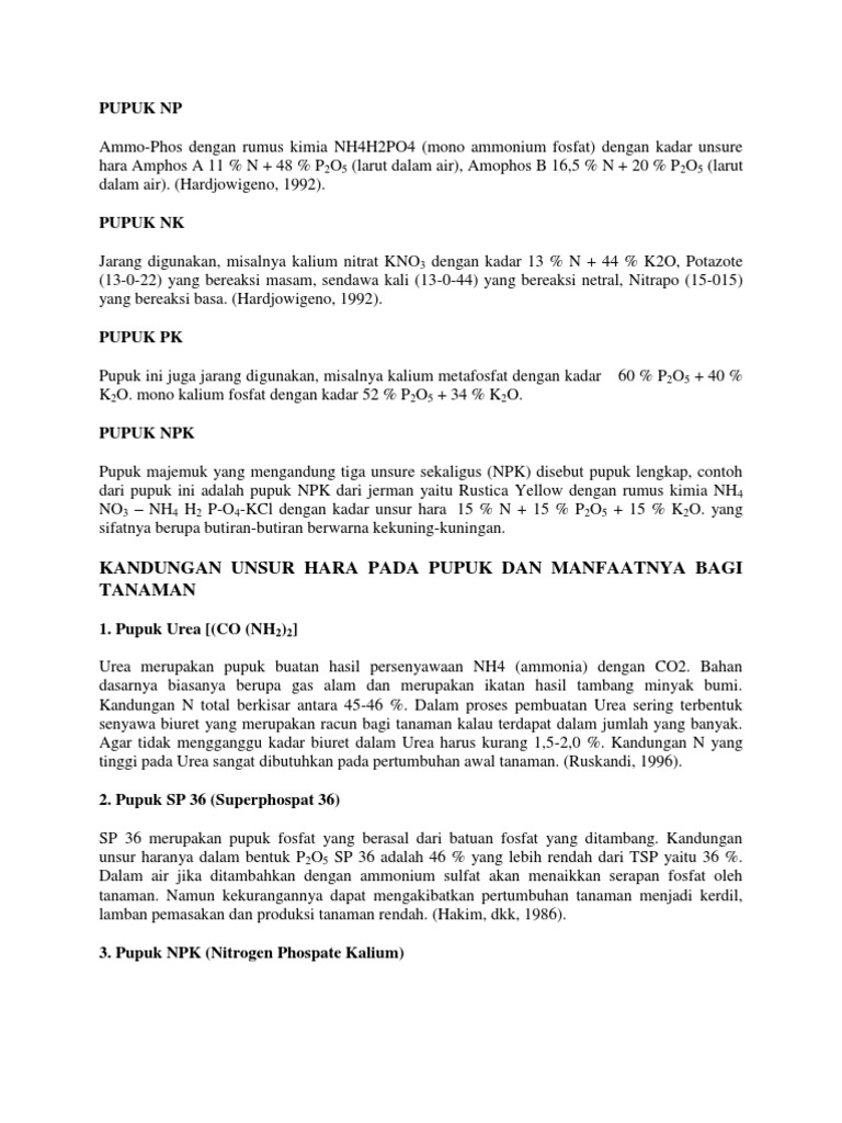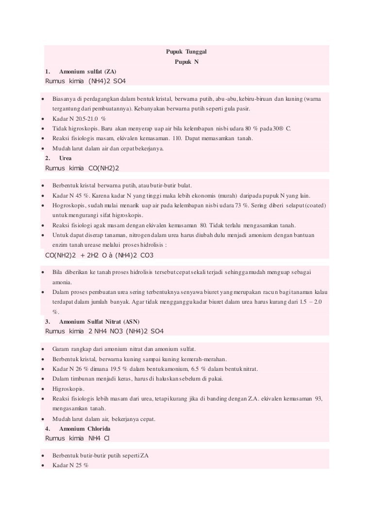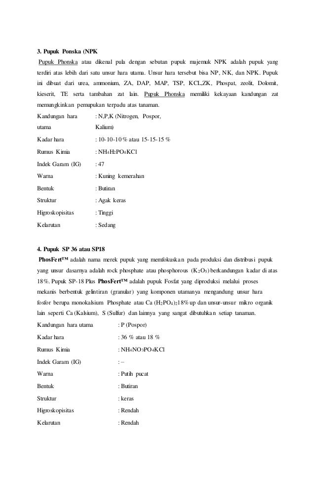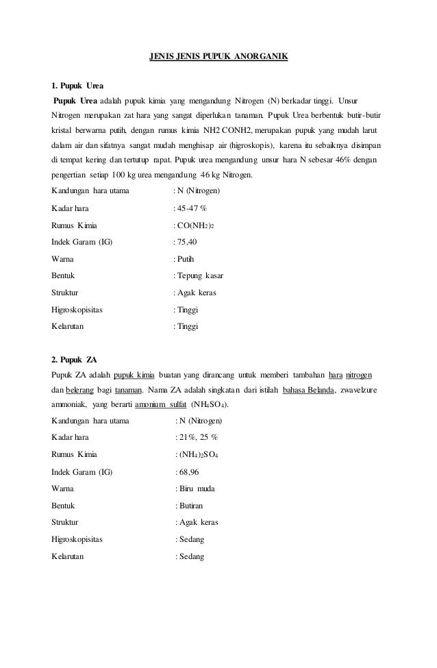 Tabel Jenis Pupuk Kimia Beserta Rumus Kimia Dan Kandungan Haranya