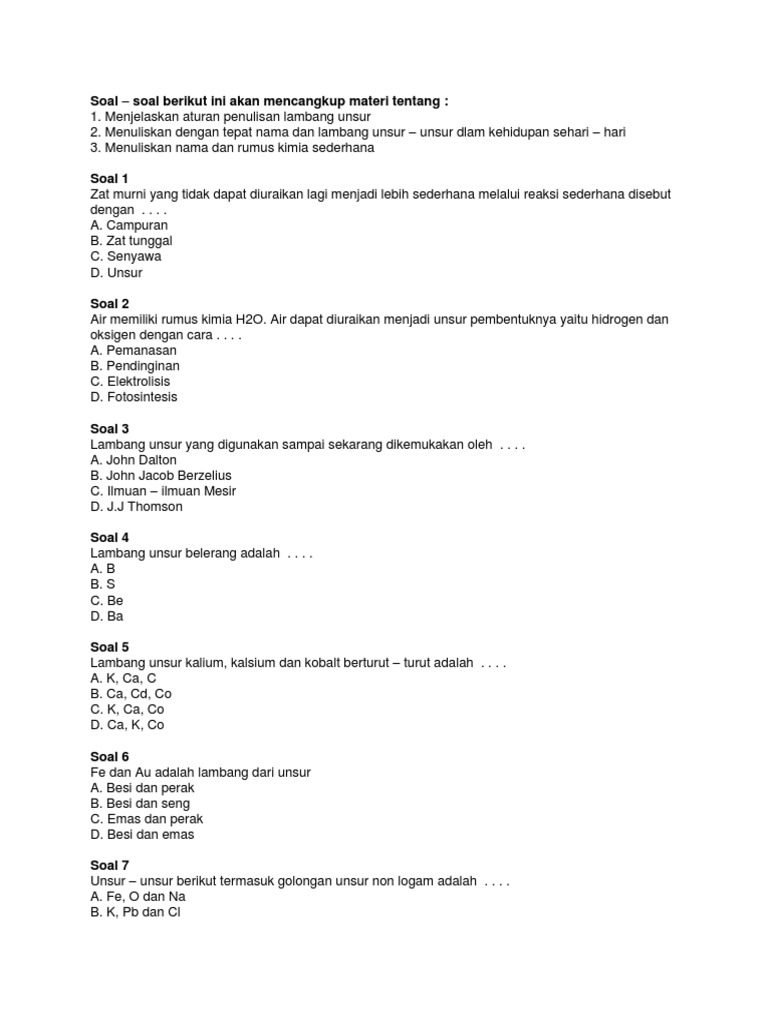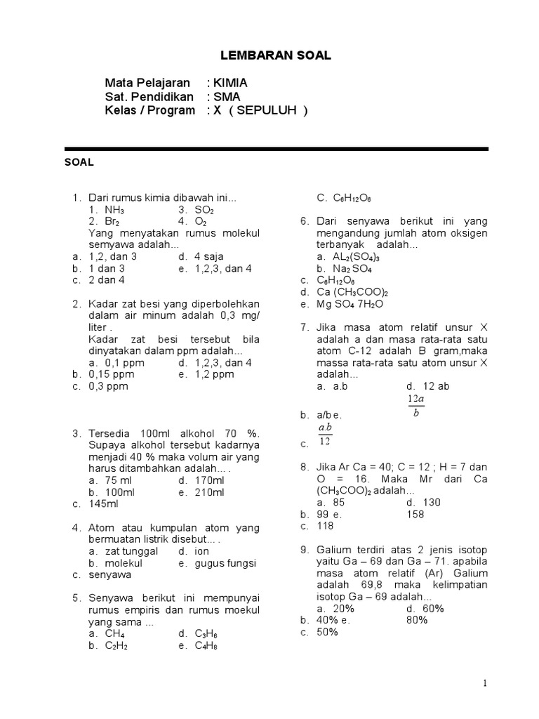 Bank Soal Kimia Kelas 10 Sma Tentang Tata Nama Senyawa Dan Persamaan
