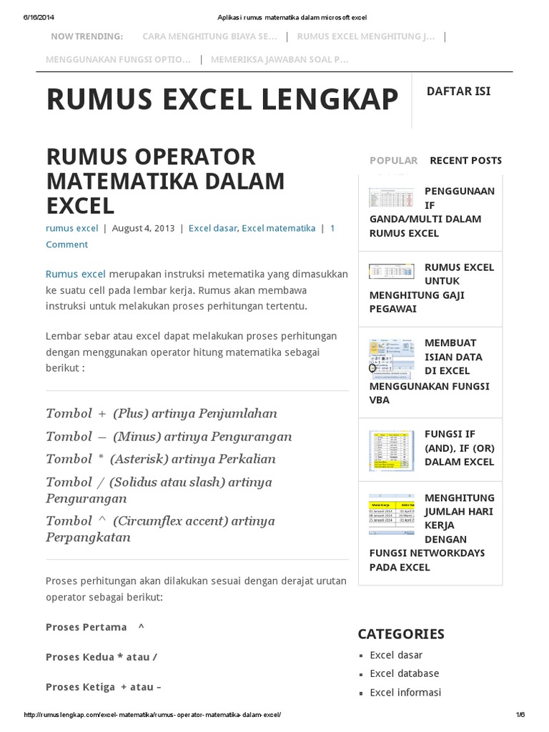 Aplikasi Rumus Matematika Dalam Microsoft Excel