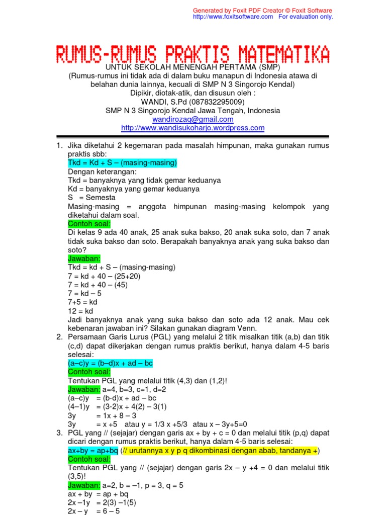 Rumus Matematika Praktis Untuk Smp Kelas 9 Belajar Matematika