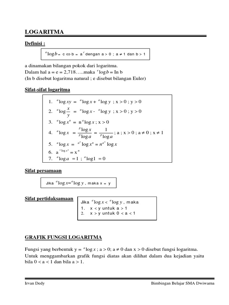 Primaindisoft Kumpulan Rumus Matematika Sma Logaritma