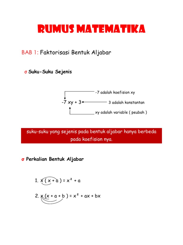 Kumpulan Materi Matematika Smp Rumus Aljabar Matematika Kelas Vii