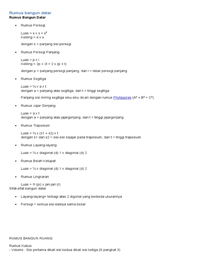 Rumus Keliling Dan Luas Bangun Datar Lengkap Beserta Gambar