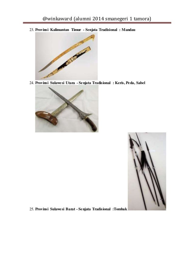 Nama Senjata Tradisional 34 Provinsi Peta Dunia Sejarah Negara