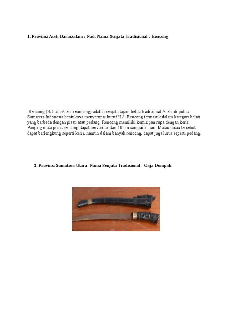 Nama Dan Gambar Senjata Tradisional Dari 33 Provinsi Di Indonesia