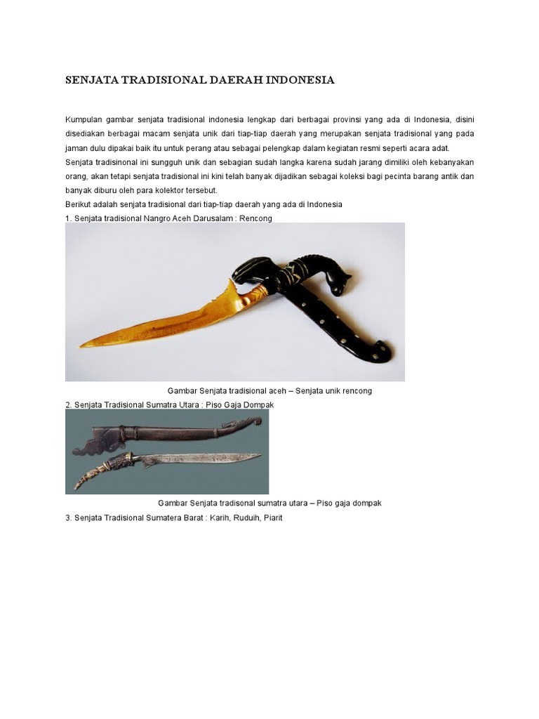 Senjata Tradisional Yang Ada Di Indonesia Docx Document