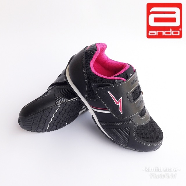Sepatu Kets Anak Ando Rafa Velcro Hitam Fusia Pink Sekolah Paud Tk