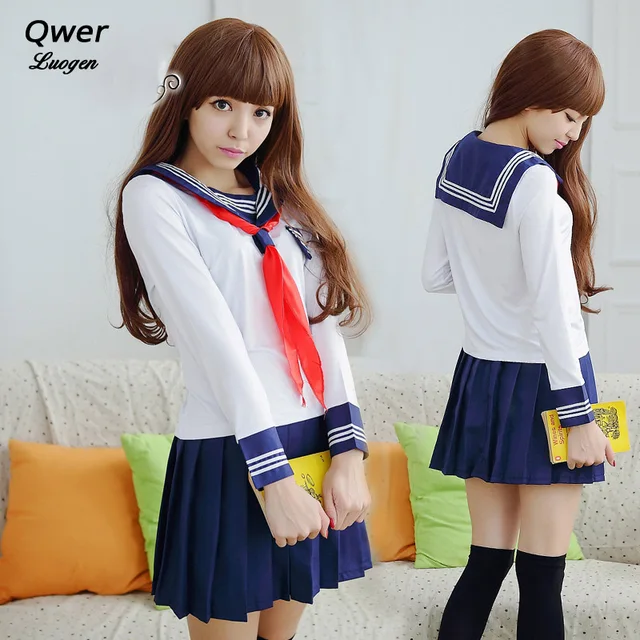 Gadis Jepang Seragam Sekolah Untuk Jk Sailor Lengan Panjang T Shirt