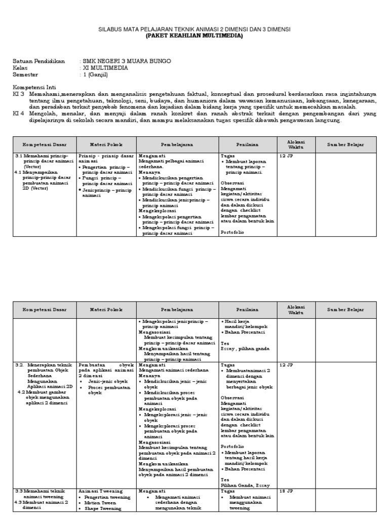 Silabus Mata Pelajaranteknik Animasi 2 Dimensi Paket Keahlian