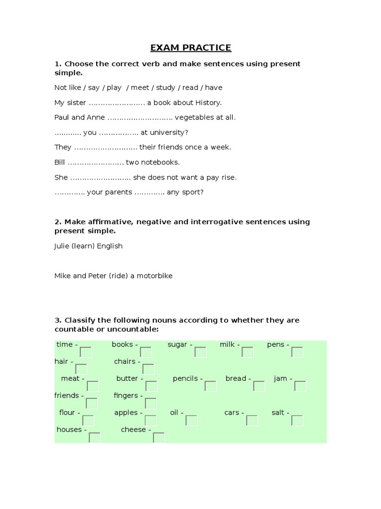 Vremena Gruppy Simple Exercise On Simple Present Form Positive