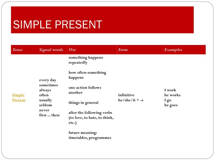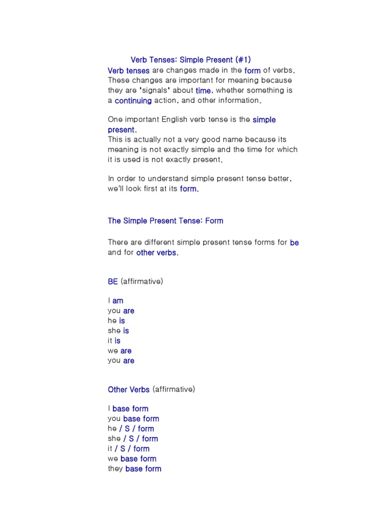 English Verb Tense Review Simple Present Tense