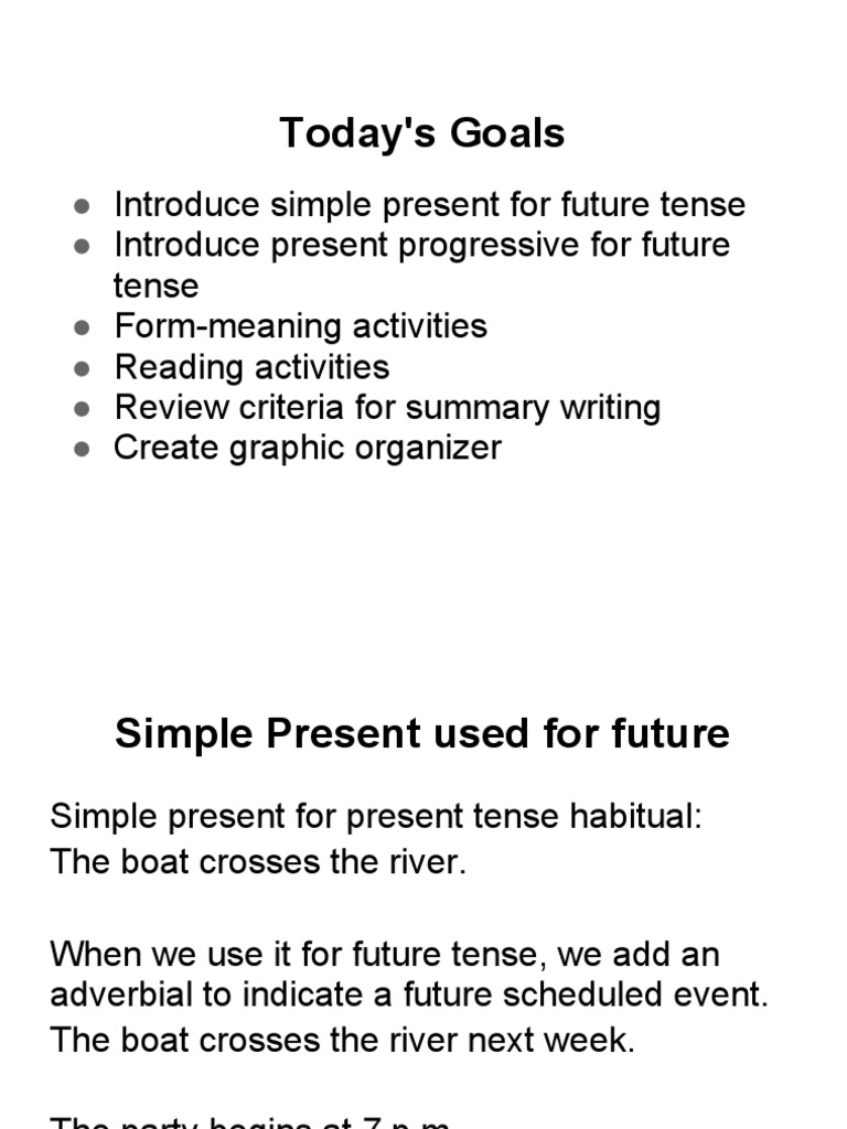 Using The Simple Present And The Present Progressive To Express Futu