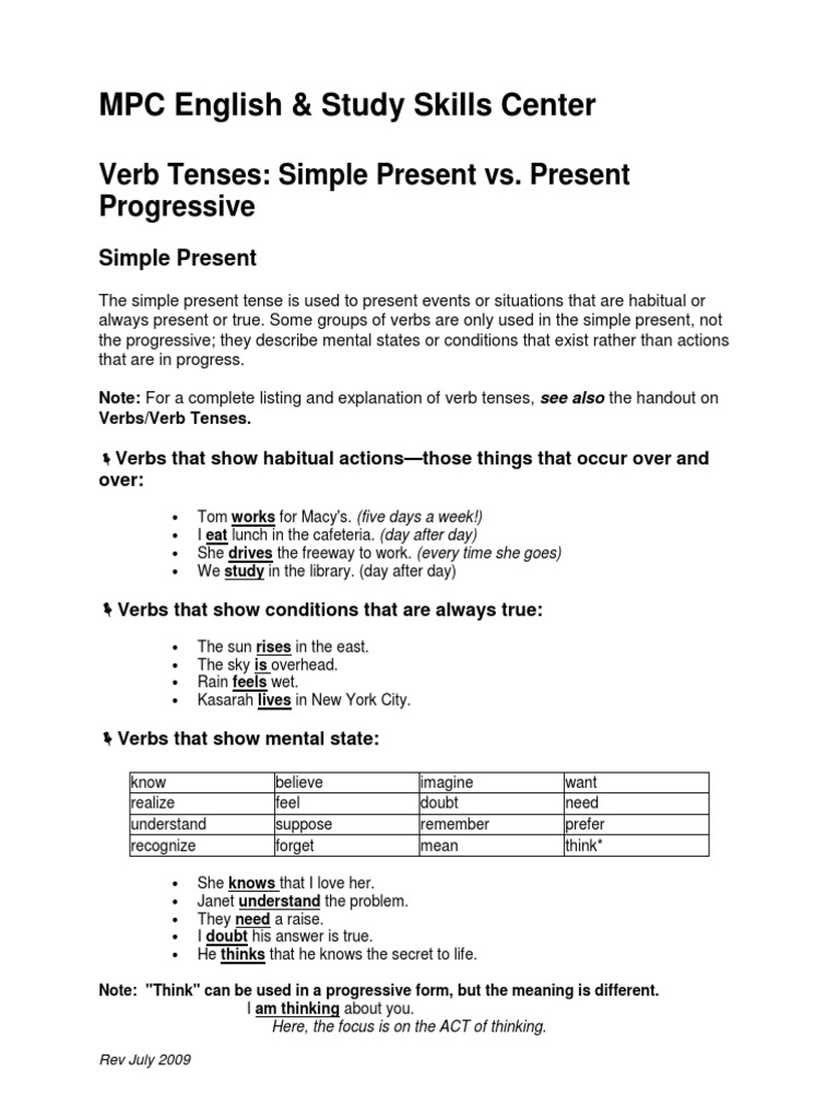 Verb Tenses Simple Pres Vs Pres Prog 09 Senses Cognition