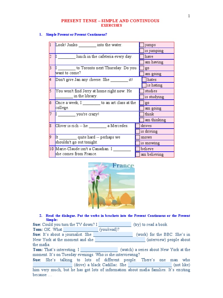 Simple present present progressive. Complete the sentences with the present simple or present continuous form of the verbs in brackets. Fill in the blanks with a present simple or present continuous tense form.