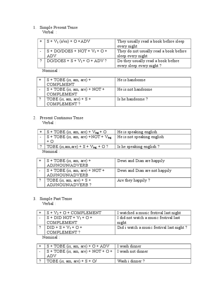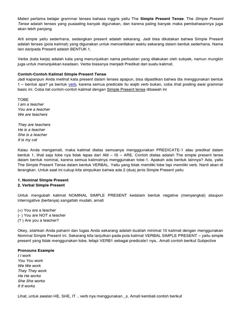 Contoh Kalimat Simple Present Tense Verbal Dan Nominal