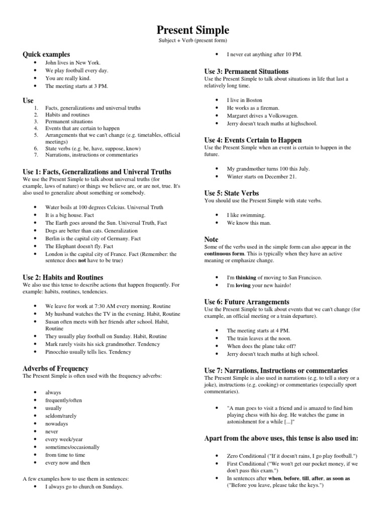 The Simple Present Tense Examples Truth And Facts