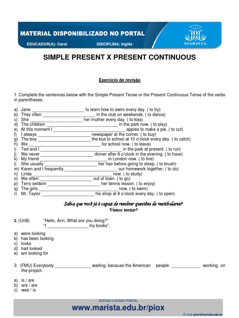 English Exercises Present Simple Versus Present Continuous