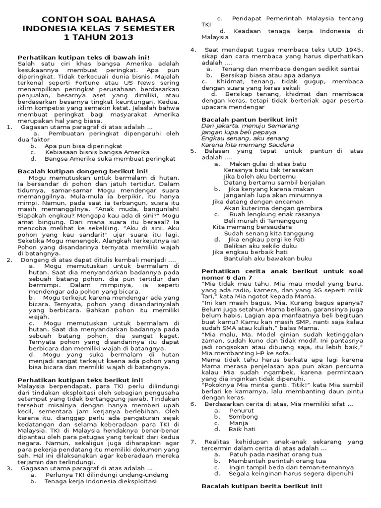 Contoh Soal Dan Jawaban Bahasa Indonesia Kelas 7 Semester 1