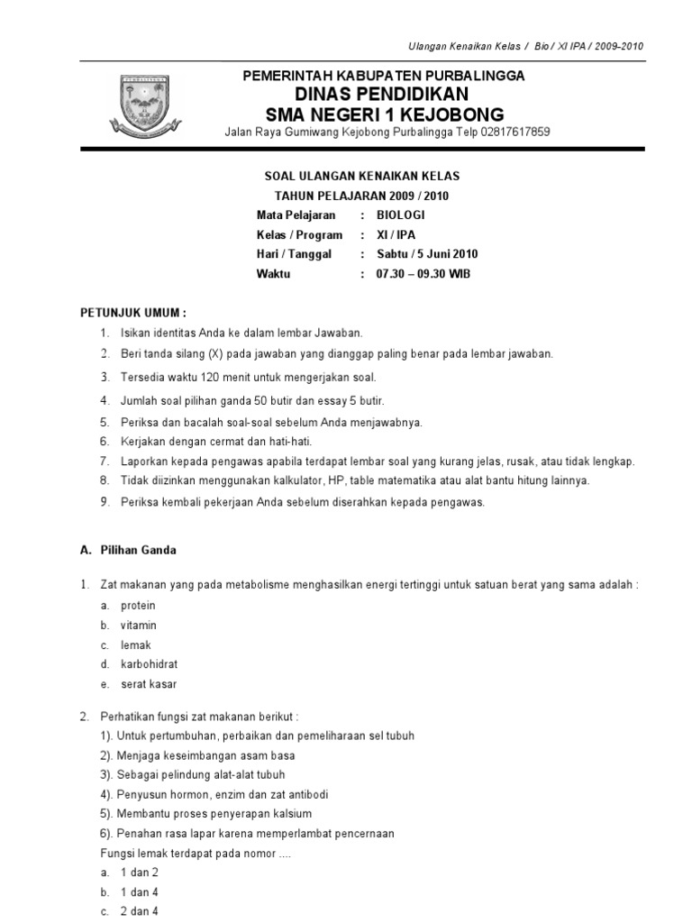 Download Soal Soal Biologi Kelas Xi Info Pendidikan Dan Biologi