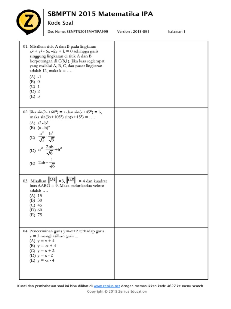 Download Kumpulan Kode Soal Sbmptn 2018 Matematika Ipa Pembahasan