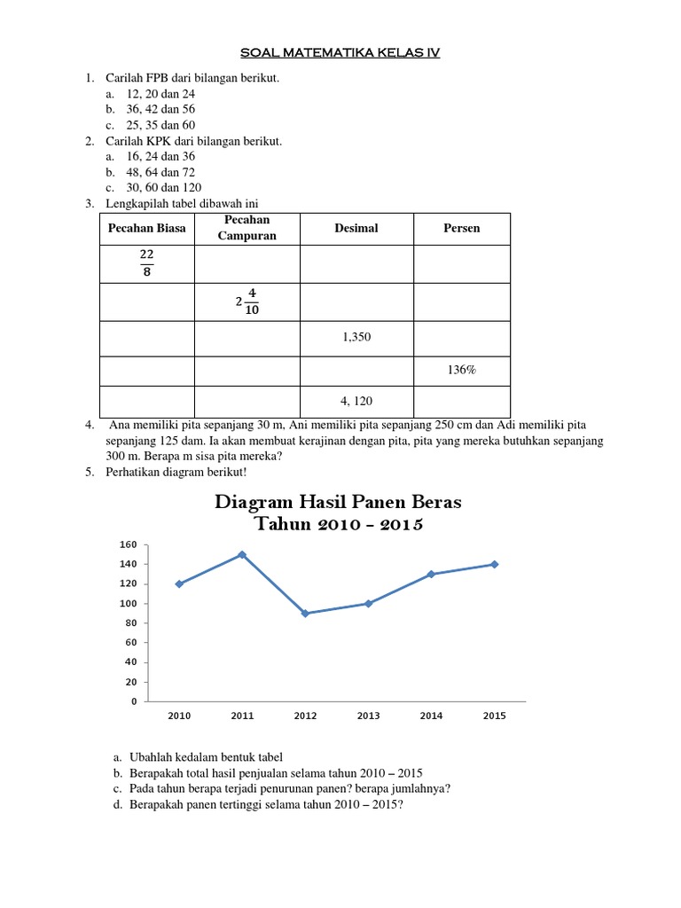 Kumpulan Soal Matematika Kelas 4 Sd Semester 1 Dan 2 Dilengkapi