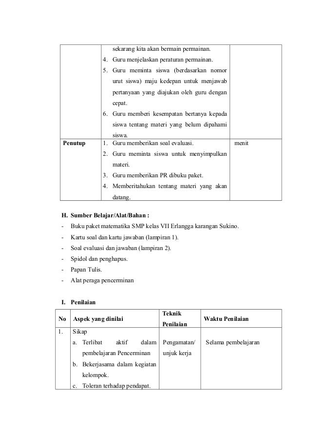 Desain Pembelajaran Matematika Smp Kelas Vii Semester 1 Eka