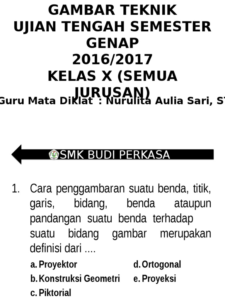 Soal Ujian Semester Genap Kumpulan Soal Pilihan Ganda Gambar Teknik