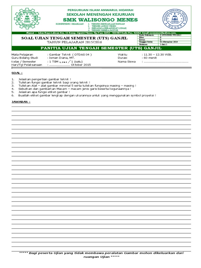 Contoh Soal Uas Gambar Teknik Smk Kelas X Semester 2
