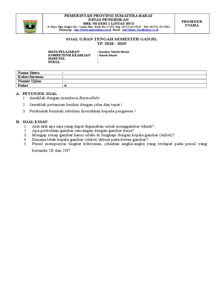 Soal Uts Gtm Ganjil 2018 Paket A