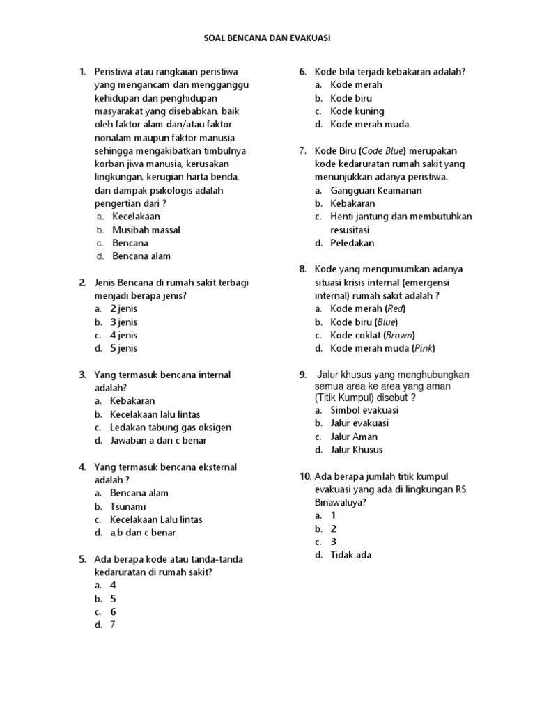 Soal Pelatihan Bencana Dan Evakuasi