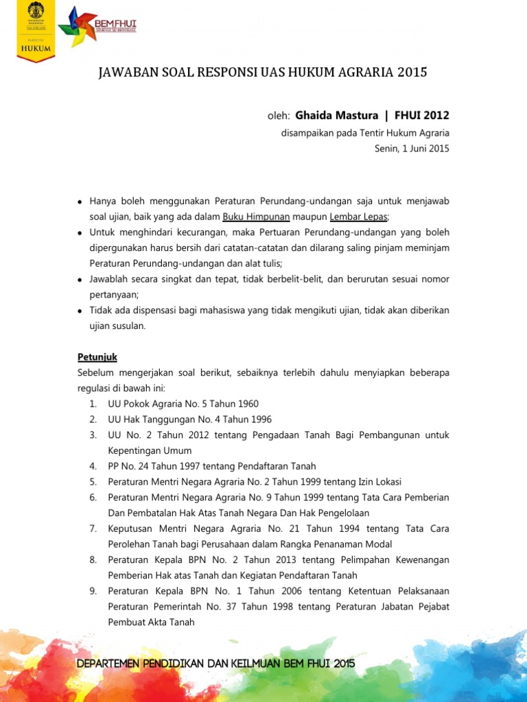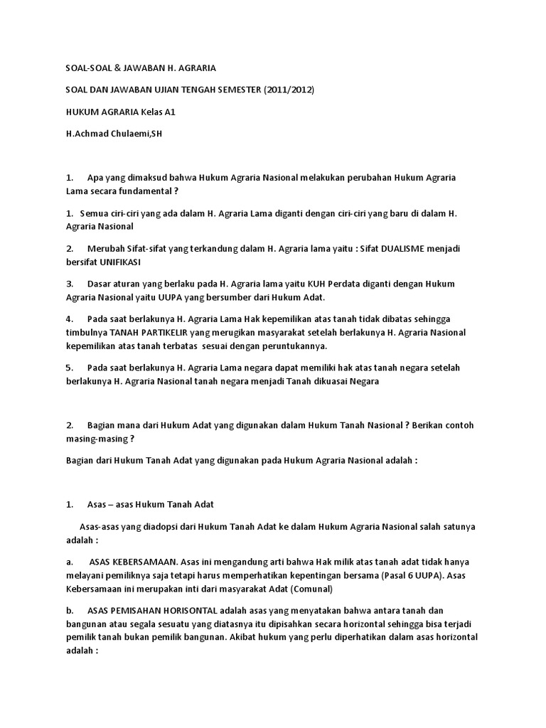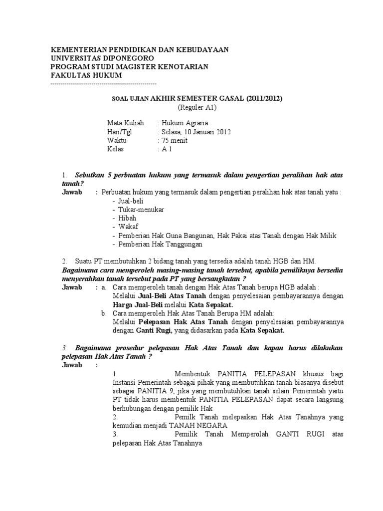 Contoh Soal Ujian Akhir Semester Hukum Agraria Pdf Free Download