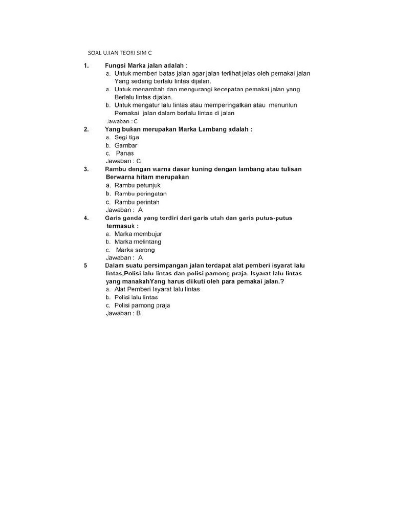 Soal Soal Ujian Sim C 2016 Soal Dan Jawaban Ujian Sim C 2016
