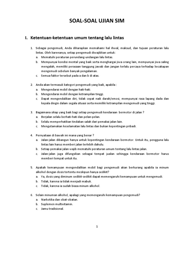 Soal Ujian Sim C Dan Jawaban Cara Sim