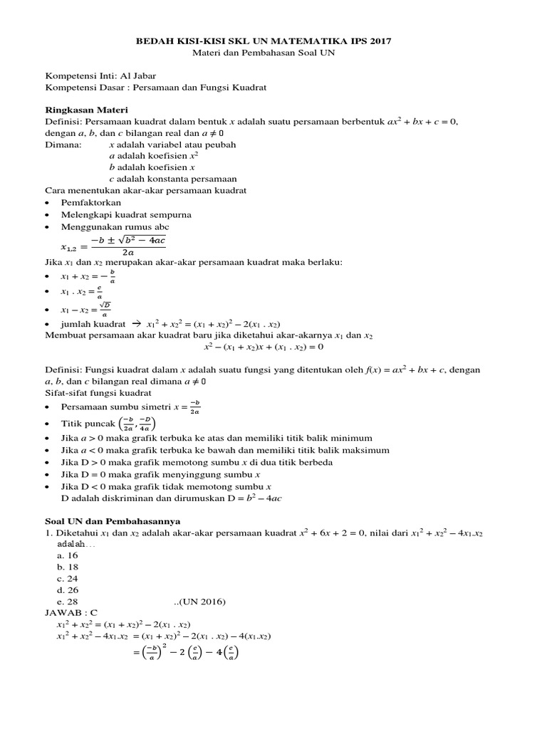 Bedah Kisi Kisi Persamaan Kuadrat Ips