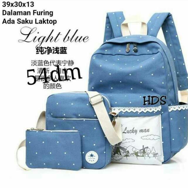 Tas Ransel Sekolah Korea Import Set Import Terbaru Murah Black