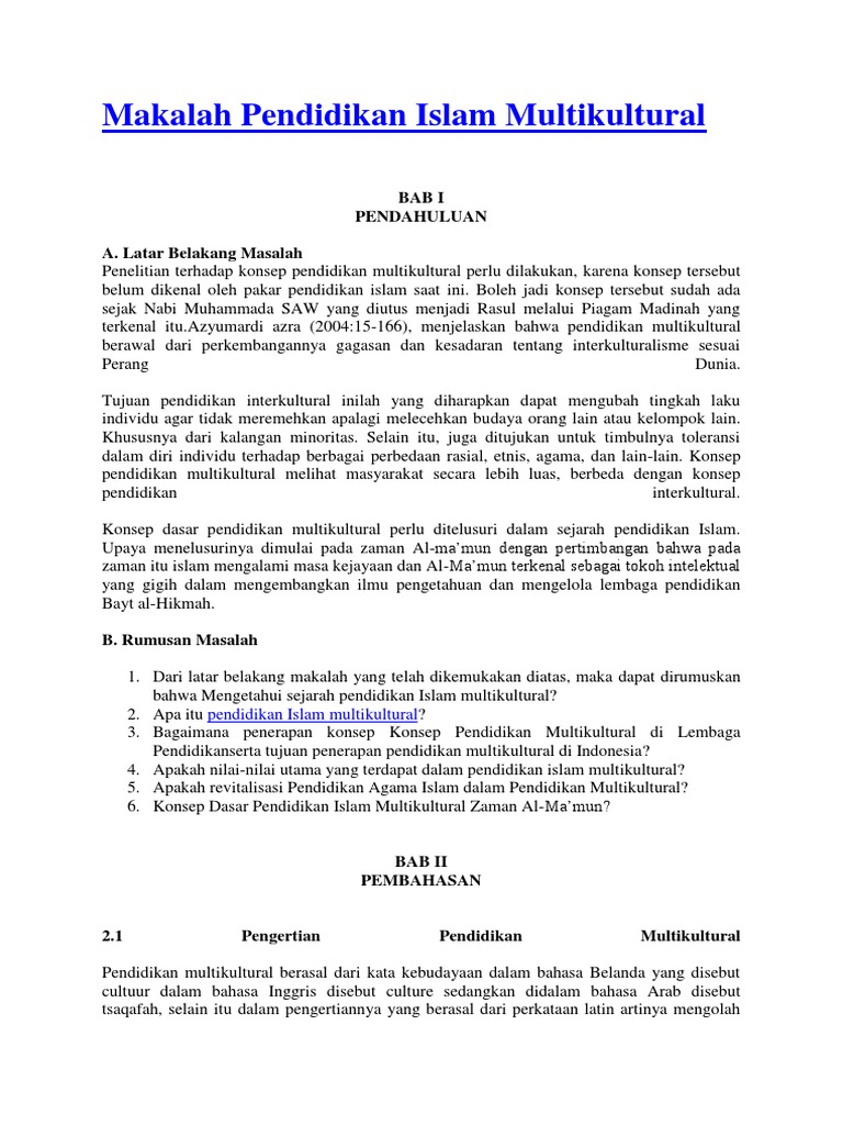 Pdf Multikulturalisme Dalam Sistem Pendidikan Agama Islam