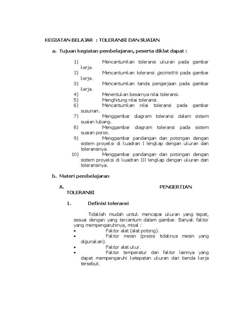 Toleransi Ukuran Teknik Mekanik Industri Smk Negeri 1 Jatirejo