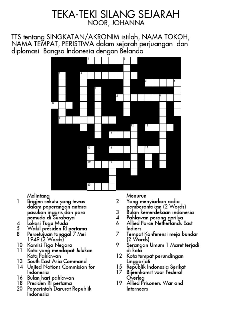 Mencari Soal 20 Teka Teki Silang Sejarah Indonesia Dengan Bab Ii