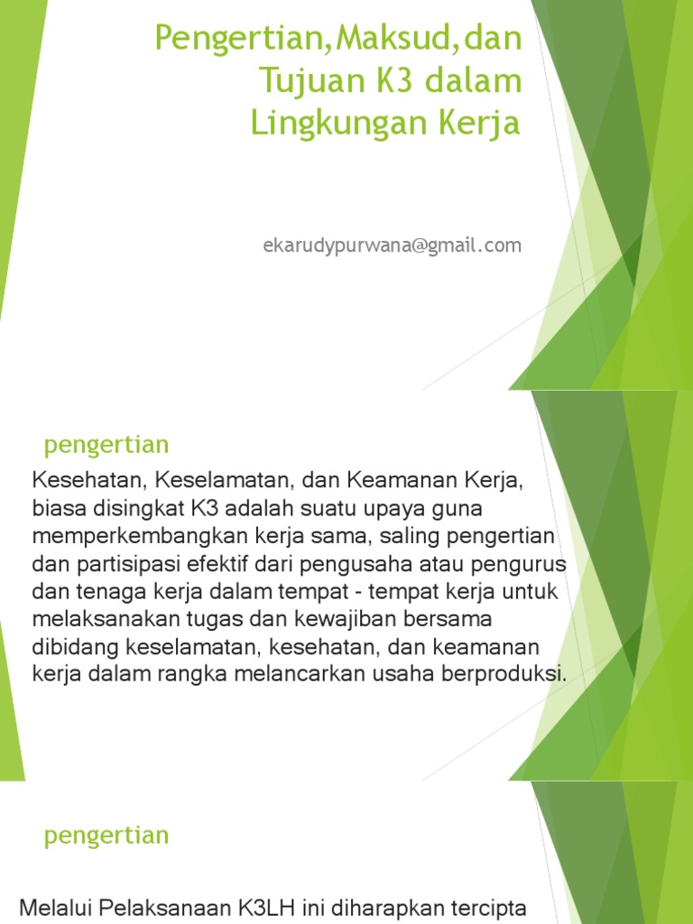 Pengertian Maksud Dan Tujuan K3 Dalam Lingkungan Kerja Pptx