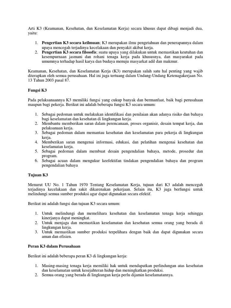 Modul ini disusun untuk menambah pengetahuan dan keterampilan serta membantu para siswa yang mempelajari keselamatan dan kesehatan kerja k3. Kondisi keselamatan dan kesehatan kerja k3 perusahaan di indonesia secara umum diperkirakan termasuk rendah. Untuk mengatasi masalah masalah k3 baik pada tingkat internasional.