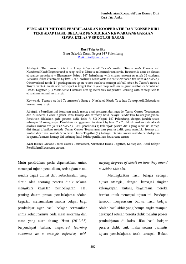 Pengaruh Metode Pembelajaran Kooperatif Dan Konsep Diri Terhadap
